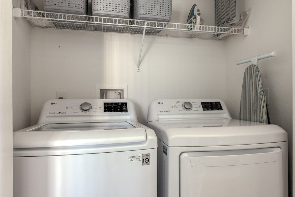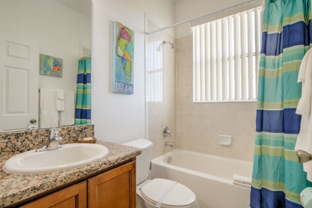 There are 5 bedrooms. The first bedroom, the master bedroom, is large. It has wood and wrought iron king-size bed and en-suite bathroom. The second bedroom, with its beach theme and queen-size bed, will make you feel like your sleeping by the beach. The third bedroom has a queen-size bedroom and is Minnie Mouse themed – perfect for girls. For young boys, there’s a fourth bedroom with a Spiderman theme. The fifth bedroom has a four-poster king-size bed and an en-suite bathroom. There’s also a washer and dryer for those mid-stay laundry needs.